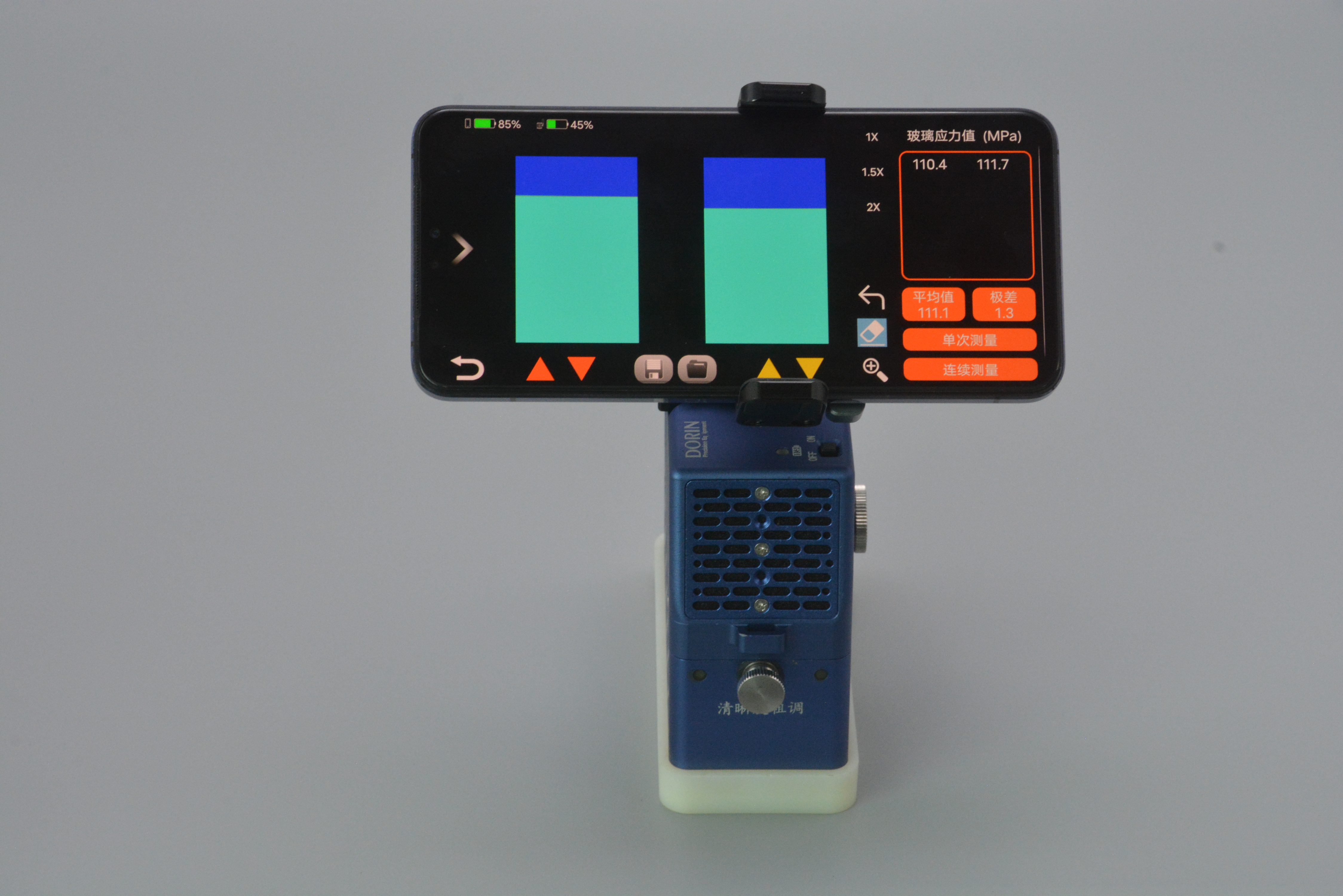 簡(jiǎn)介: SSM-V 型玻璃表面應(yīng)力儀利用浮法玻璃表面錫擴(kuò)散層引起的光波導(dǎo)效應(yīng)來定量測(cè)量表面應(yīng)力。該儀器測(cè)量精度高、結(jié)構(gòu)新穎,使用簡(jiǎn)單、攜帶方便。該儀器采用光波導(dǎo)效應(yīng)原理,光學(xué)系統(tǒng)結(jié)構(gòu)設(shè)計(jì)獨(dú)到,成像效果良好,其誤差不超過±3.6Mpa。主要性能達(dá)到了國(guó)際同類產(chǎn)品的要求。 應(yīng)用廣泛:適用于半鋼化玻璃、鋼化玻璃的表面應(yīng)力的定量測(cè)量。 輕巧實(shí)用:儀器僅重 640g,體積小巧,將儀器置于浮法玻璃的浸錫面的表面上,調(diào)節(jié)圖像,即可測(cè)量。 操作方便:連接手機(jī) APP,可以實(shí)現(xiàn)遠(yuǎn)程測(cè)量,自動(dòng)測(cè)量。 測(cè)量模式:手動(dòng)測(cè)量,自動(dòng)測(cè)量,單次測(cè)量,連續(xù)測(cè)量。 數(shù)據(jù)處理:可保存圖片結(jié)果,可錄像。 機(jī)身結(jié)構(gòu):一體式機(jī)身設(shè)計(jì),防止浸液污染儀器光學(xué)部件,保養(yǎng)方便。 光 源:專用 LED 光源 電 源:內(nèi)置鋰電池,支持邊充邊用 測(cè)量范圍:10~300Mpa 精 確 度:±3.5MPa(顯示精度 0.1) 測(cè)試玻璃:最小 20mm X 50mm。 測(cè)試 APP:IOS,安卓均適用。 外型尺寸:110(長(zhǎng))X48(寬)X 95(高)性能特點(diǎn):
